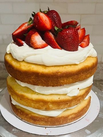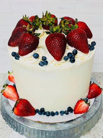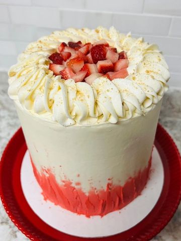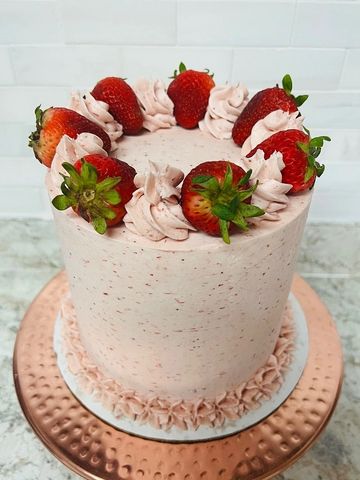 Hands down, my number one best selling cake year after year. Moist strawberry cake layers with strawberry buttercream, decorated beautifully up top with fresh strawberries. Order yours today and find out why it's my #1 seller!