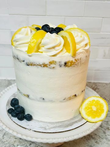 Lemon cake layers baked with fresh blueberries and lightly iced with cream cheese buttercream. You can taste the summer in every bite!