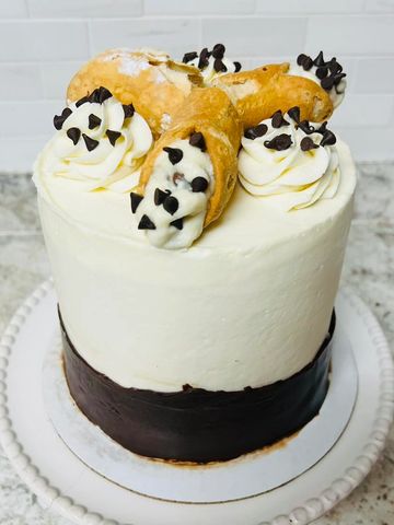Calling all Cannoli lovers! This New York inspired cake has vanilla cake layers, filled with fresh cannoli cream and chocolate chips, covered in ricotta buttercream and chocolate ganache. It’s a cannoli in cake form!