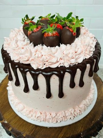 Just like the Classic Strawberry Cake but with Chocolate drip and Chocolate Covered Strawberries on top!