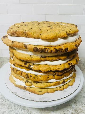 Out of the ordinary, but definitely extraordinary! Moist made-from-scratch giant chocolate chip cookies with vanilla buttercream icing between each one! Made to share, but you'll have a hard time once you try one!