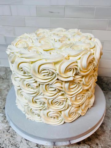 Make your special day even sweeter with this lovely rose laden masterpiece. Such a simple yet versatile cake; Use it as bridal cake- the only thing more beautiful is the blushing bride-to-be! This cake is also perfect for baby showers or gender reveals. Simple vanilla buttercream icing and vanilla layers that can be dyed pink or blue for the special reveal of your bundle of joy!